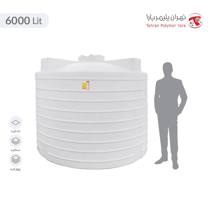 مخزن آب 6000 لیتری عمودی کوتاه با عرض 220 سانتیمتر مناسب برای فضای باز و قرارگیری بر روی پشت بام است. با توجه به ساختار یکپارچهای که به لطف تکنولوژی به روز و پیشرفته کارخانجات تولید مخازن پلی اتیلن تهران پلیمر یارا ممکن شده است، این مخزن بسیار مقاوم بوده و بصورت یک لایه و سه لایه و با مقاومت بسیار بالا تولید و عرضه میشود.